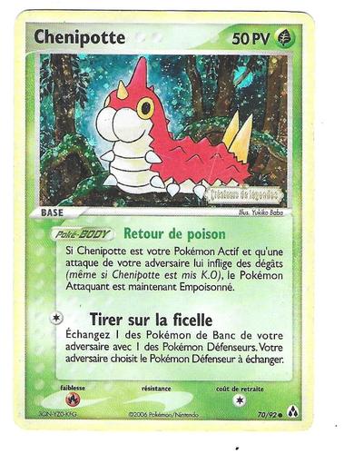 93 cartes (1 secrètes) Checklist Boosters et Decks Envoyer des scans. Commune. Unco. Rare. Holographique. Ultra-rare. Secrète. Visualisation de toutes les cartes Pokémon de la série EX : Créateurs de Légendes.