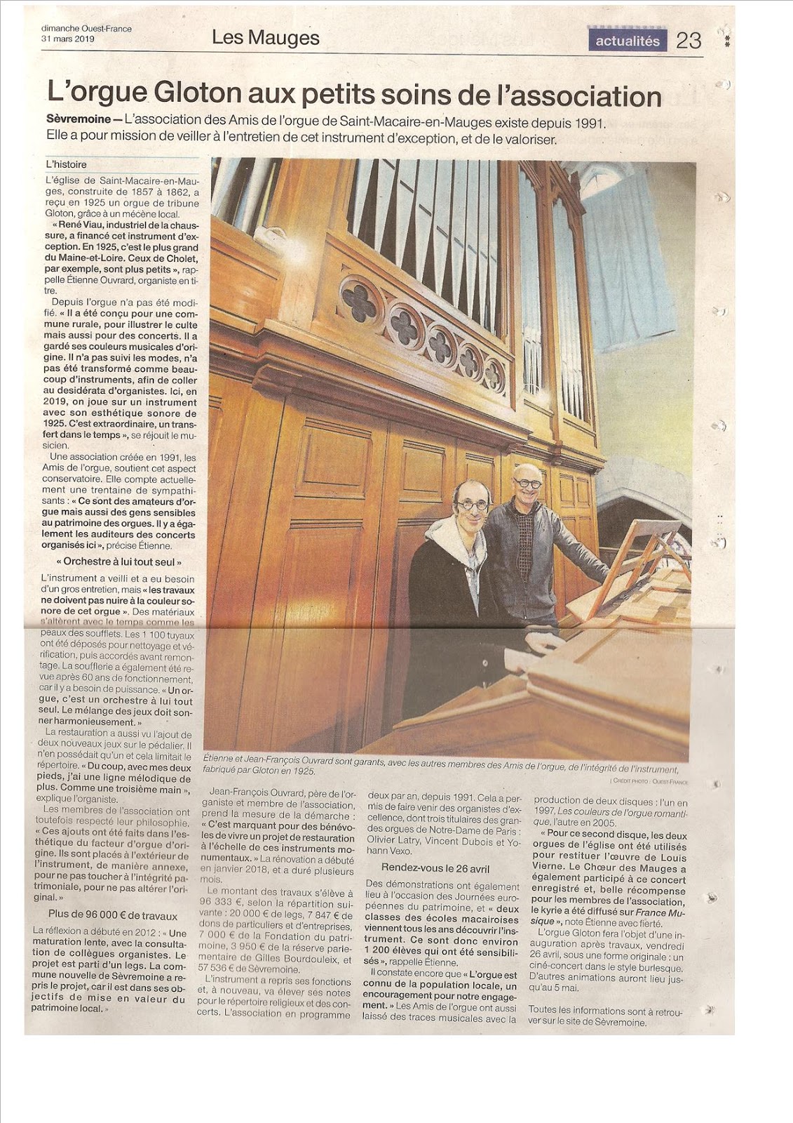 Amis de de Saint Macaire en Mauges La presse met l'association à l'honneur