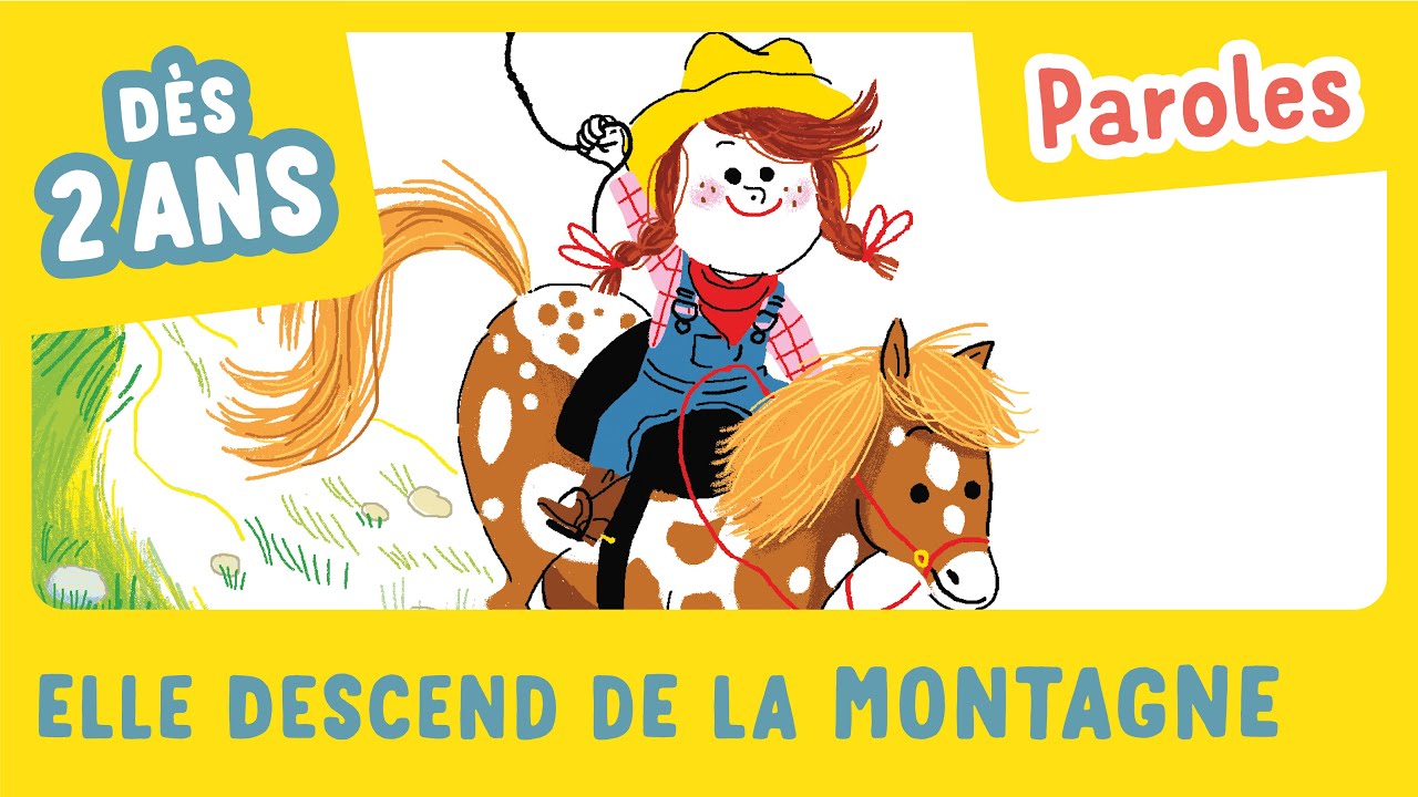 1. Elle descend de la montagne à cheval (x2) (She comes down the mountain on her horse) Elle descend de la montagne (x2) (She comes down the mountain) Elle descend de la montagne à cheval (Refrain) Singing I, I, youpee, youpee I Singing I, I, youpee, youpee I Singing I, I, youpee, I, I, youpee I, I, youpee, youpee I ! 2.