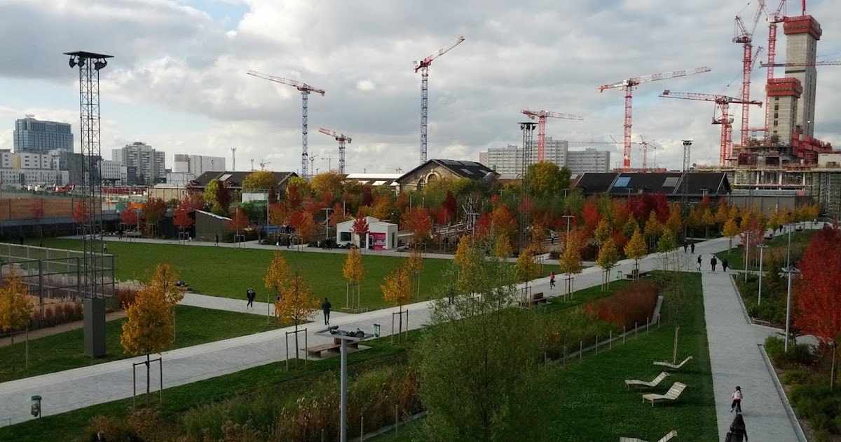A beautiful park. Located in the 17th arrondissement of Paris, Parc Martin Luther King is a huge long park. It was built recently, between 2007 and 2014, and is built around three themes - water, sport, and seasons. The themes can be seen in the buildings around the park - the park is surrounded by modern buildings and many under construction.