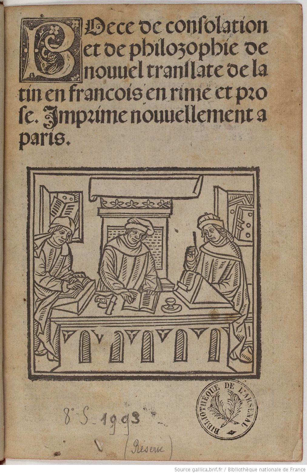 Catalogue Rouge De la consolation de la philosophie, de nouvel translaté de latin en franç. en