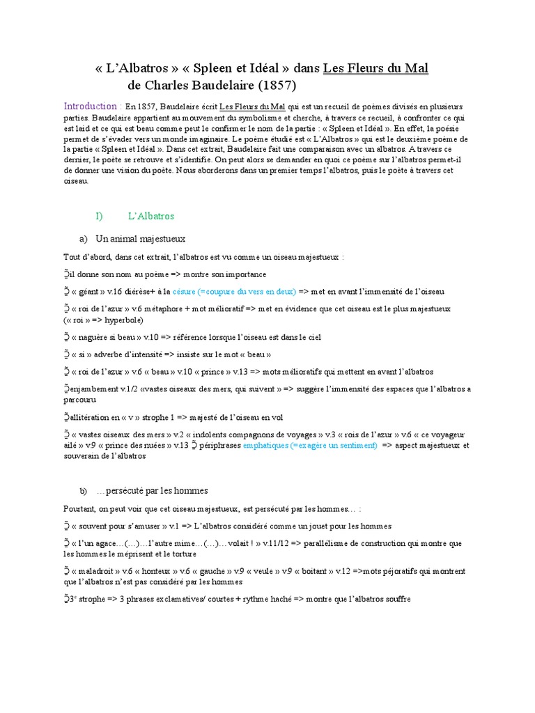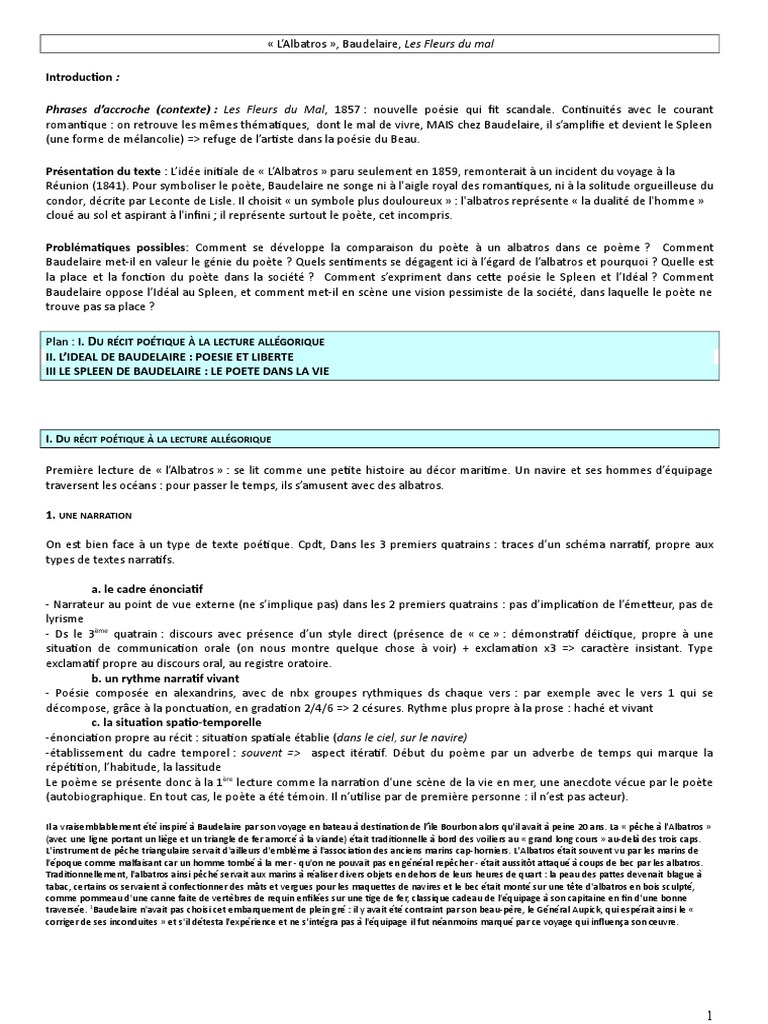 L'Albatros Commentaire PDF Charles Baudelaire Les Fleurs du mal