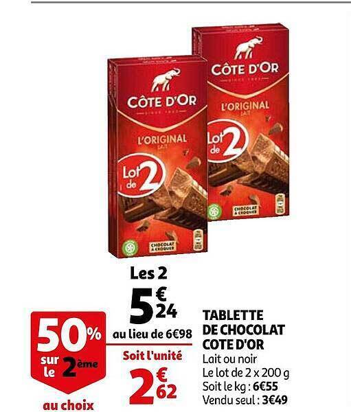 Promo Tablette De Chocolat Côte D'or chez Auchan