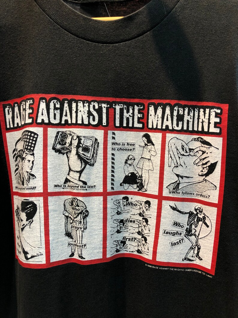 Rage Against The Machine Won't Do Vintage Distressed Ragged Edge (Dip-Dye) Vintage T-shirt. $26.99 - $27.99. Rage Against The Machine Crowd Masks T-shirt. $26.99 - $27.99. Rage Against The Machine Anger Is A Gift T-shirt. $26.99 - $27.99. Rage Against The Machine Fear Is Your Only God (Back Print) Slim Fit T-shirt. $27.99.