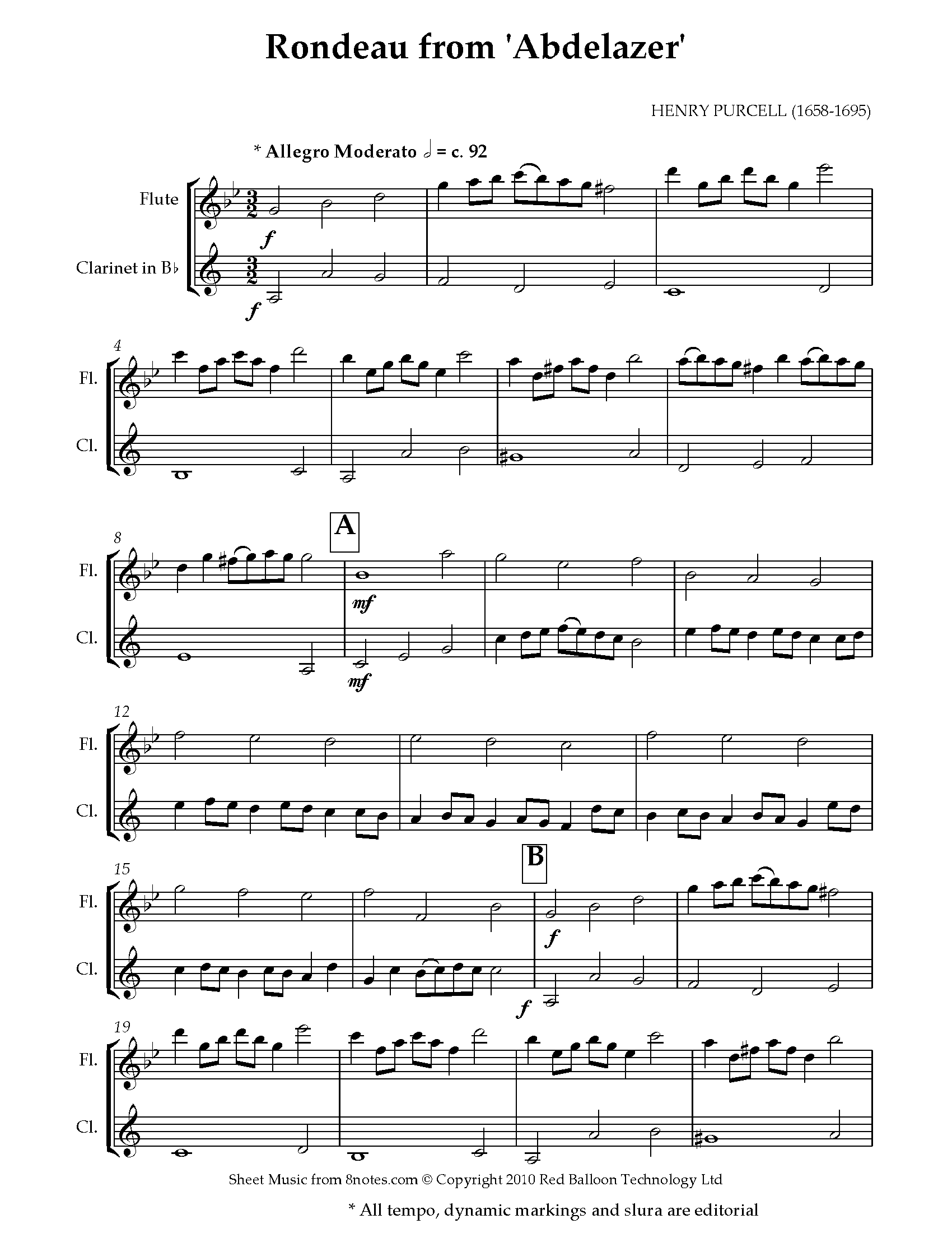 Purcell Young Persons Guide to the Orchestra Theme (Purcells Rondeau) Sheet music for Flute